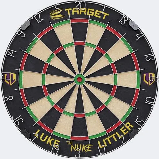 Introducing the Luke Littler Dartboard Set, a collaboration with “The Nuke”. This set features a signature player-endorsed dartboard equipped with a rotational score-ring, and staple-free bullseye for enhanced scoring accuracy. Crafted from self-healing African Sisal material, it ensures durability and shape recovery for extended use.