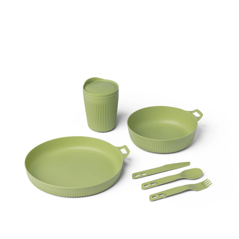 Designed for how you eat outdoors, the 6-piece Horizon Dinnerware Set includes a plate, bowl, insulated mug, cutlery, and mesh sack. Thumb grips ensure secure hold and minimise spills. CoolGrip base reduces heat transfer for comfort. Cutlery clips to form a long spoon or fork, ideal for meal pouches and deep pots. The mug’s double-wall design insulates drinks and features a secure lid to prevent spills. Lightweight, stackable, and durable for easy outdoor dining.